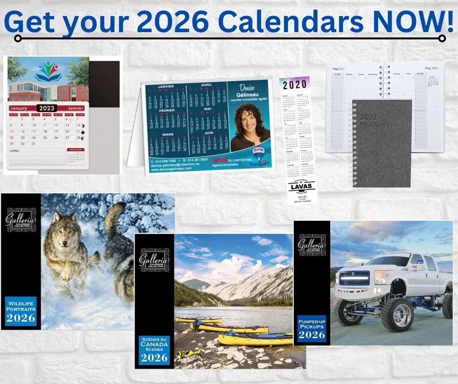 Choose from our Stock Image Catalogues or Custom print YOUR images. Or why not select Magnetic Calendars, or Bookmark Calendars!! Wall Calendars or Desk Calendars are always the most popular, adding in your customized options such as stapled, Coil Bound, logo or message will ensure your Branded Business stays in front of your customers daily!! The options are endless !!